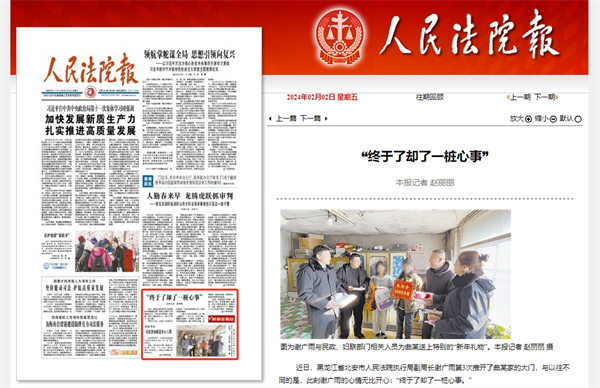 《人民法院报》头版报道:“终于了却了一桩心事”
