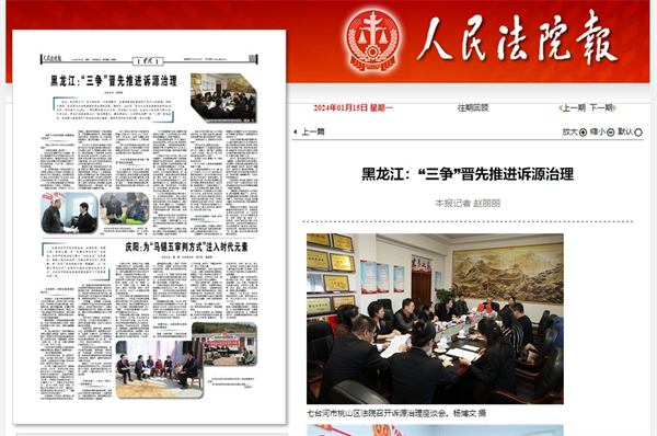 《人民法院报》:黑龙江:“三争”晋先推进诉源治理