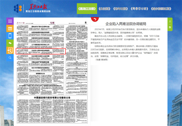 《黑龙江日报》报道鹤岗市东山区法院:企业陷入两难法院协调破局