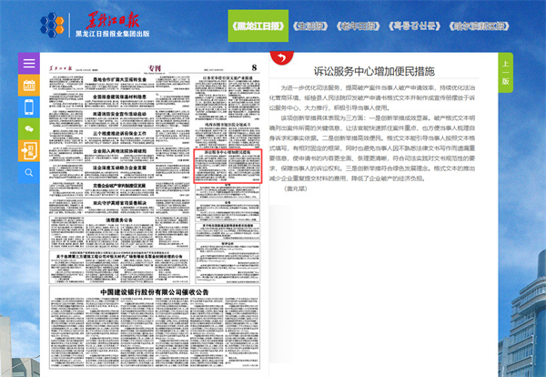 《黑龙江日报》:南岗区人民法院 “集约+”模式 赋能营商环境优化
