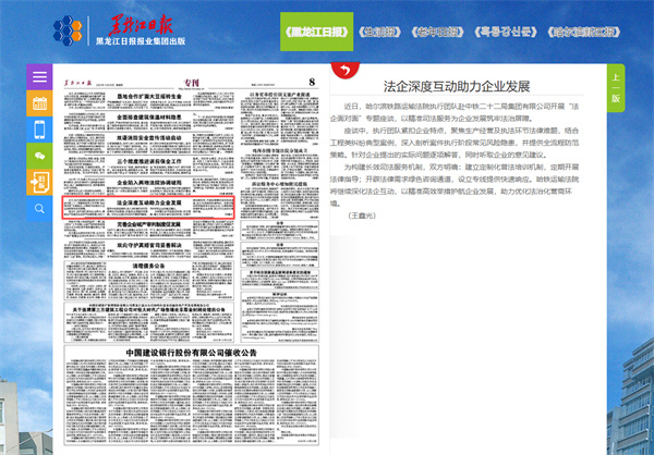 《黑龙江日报》报道哈铁法院:法企深度互动助力企业发展