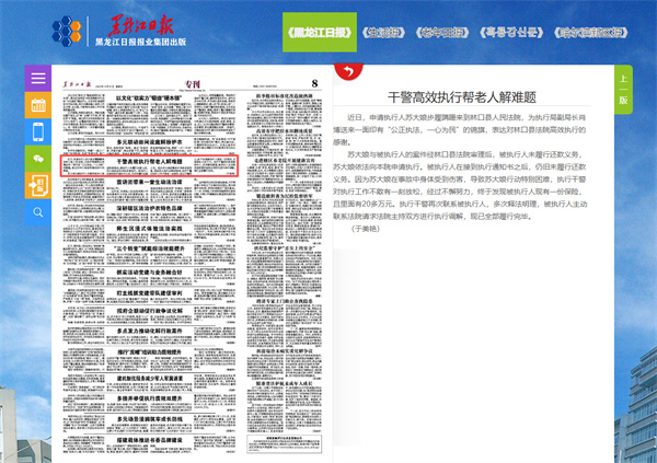 《黑龙江日报》报道林口县法院:干警高效执行帮老人解难题