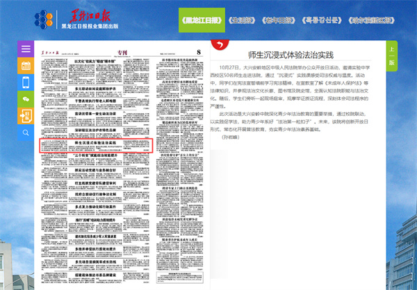 《黑龙江日报》报道大兴安岭地区中院:师生沉浸式体验法治实践