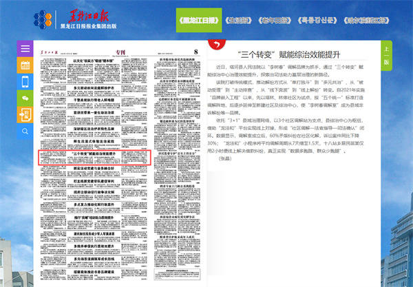 《黑龙江日报》报道塔河县法院:“三个转变”赋能综治效能提升