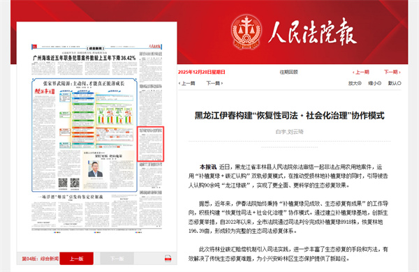 《人民法院报》:黑龙江伊春构建“恢复性司法﹢社会化治理”协作模式