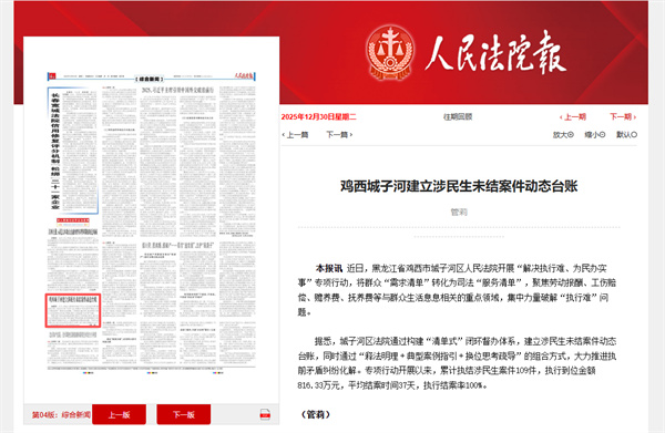 《人民法院报》:鸡西城子河建立涉民生未结案件动态台账