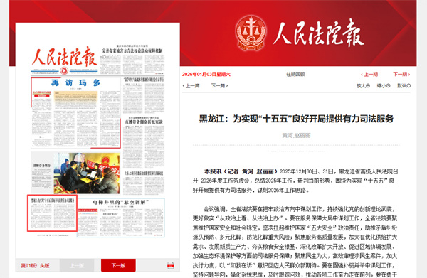 《人民法院报》头版报道:黑龙江为实现“十五五”良好开局提供有力司法服务