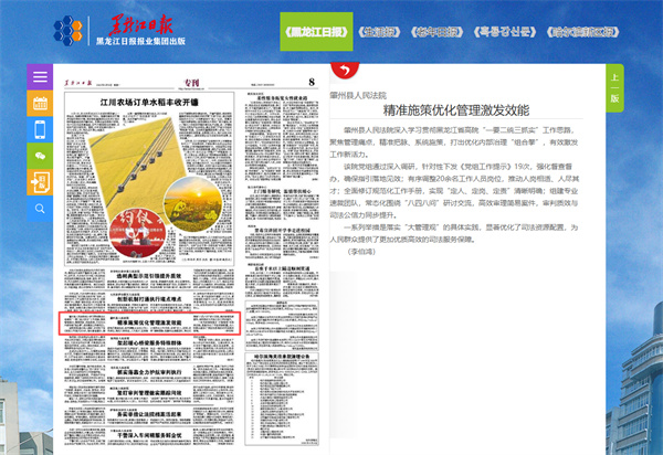 《黑龙江日报》:肇州县人民法院 精准施策优化管理激发效能