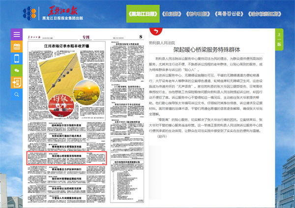 《黑龙江日报》:勃利县人民法院 架起暖心桥梁服务特殊群体
