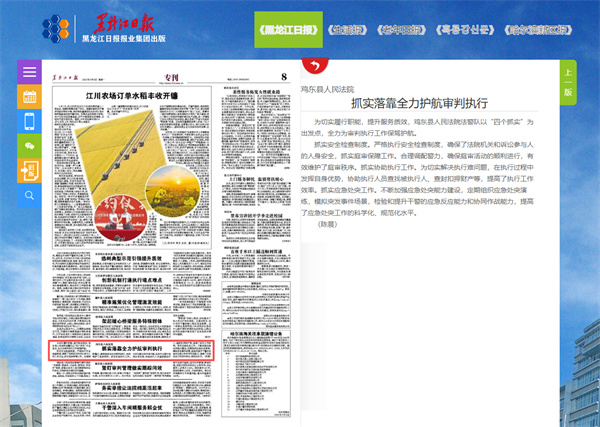 《黑龙江日报》:鸡东县人民法院 抓实落靠全力护航审判执行