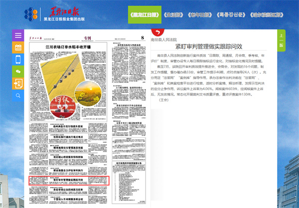 《黑龙江日报》:南岔县人民法院 紧盯审判管理做实跟踪问效