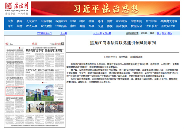 《法治日报》:黑龙江尚志法院以党建引领赋能审判