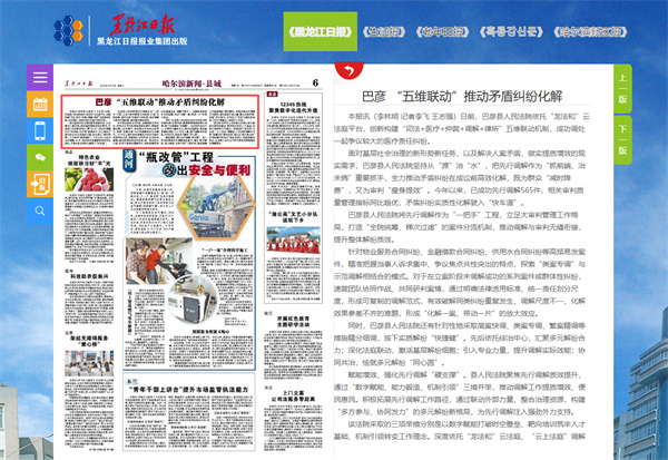 《黑龙江日报》:巴彦 “五维联动”推动矛盾纠纷化解