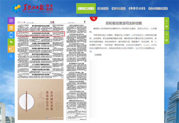 《黑龙江日报》报道嘉荫县法院:双轮驱动激活司法新动能
