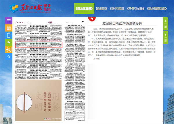 《黑龙江日报》报道林口县法院:立案窗口笔谈沟通温情受理
