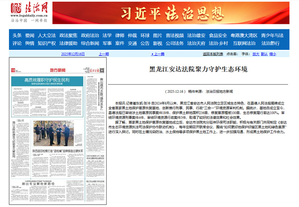 《法治日报》:黑龙江安达法院聚力守护生态环境