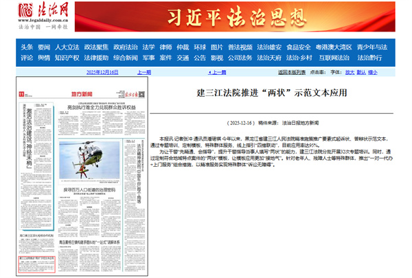 《法治日报》:建三江法院推进“两状”示范文本应用