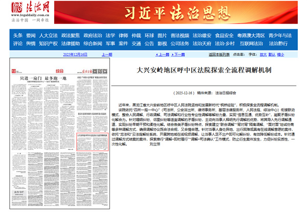 《法治日报》:大兴安岭地区呼中区法院探索全流程调解机制