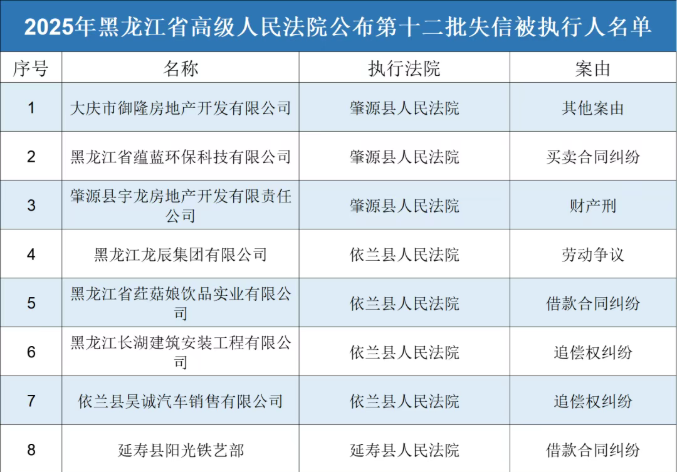 失信大曝光!2025年黑龙江高院第十二批失信被执行人名单来了! 本次失信曝光台共曝光118家失信企业哪些企业被曝光?有没有你认识的企业?一起来看看吧!