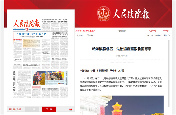 《人民法院报》:哈尔滨松北区法治温度驱散北国寒意