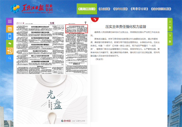 《黑龙江日报》报道嘉荫县法院:压实主体责任强化权力监督