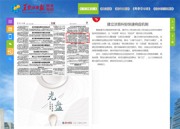 《黑龙江日报》报道漠河市法院:建立涉旅纠纷快速响应机制