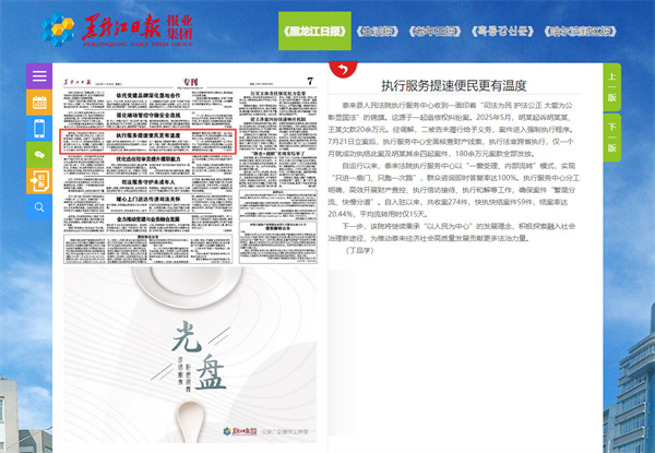 《黑龙江日报》报道泰来县法院:执行服务提速便民更有温度