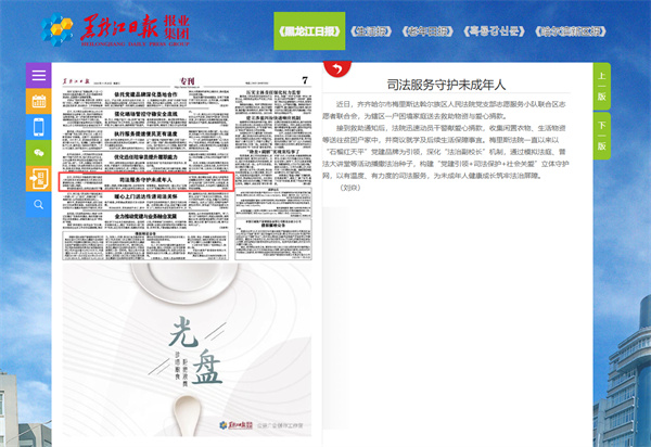 《黑龙江日报》报道齐齐哈尔市梅里斯达斡尔族区法院:司法服务守护未成年人