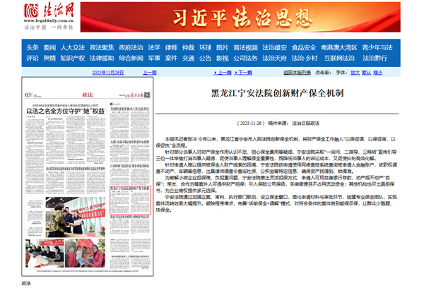 《法治日报》:黑龙江宁安法院创新财产保全机制