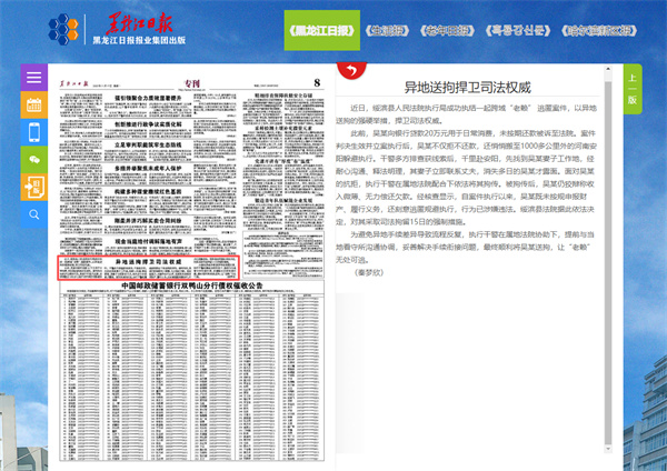 《人民法院报》:黑龙江依兰 一小时内高效执结六年积案