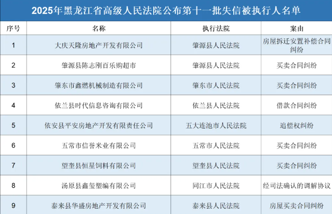失信大曝光!2025年黑龙江高院第十一批失信被执行人名单来了! 本次失信曝光台共曝光106家失信企业哪些企业被曝光?有没有你认识的企业?一起来看看吧!