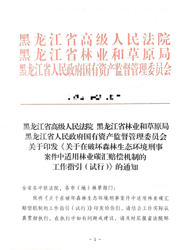 近日,黑龙江高院与省林草局、省国资委联合印发《关于在破坏森林生态环境刑事案件中适用林业碳汇赔偿机制的工作指引(试行)》(以下简称《工作指引》),创新性地将本省自主开发的林业碳汇产品纳入生态保护司法赔偿体系,有效破解生态环境损害鉴定评估中存在的周期长、成本高、标准不统一等关键难题,为全省法院科学、规范适用认购碳汇开展替代性修复提供了明确、具体的操作指南。微信图片_20251118141820_1373_110(1).png黑龙江省森林碳储量约57亿吨,是国家“双碳”战略的重要支撑。然而,在破坏森林生态环境刑事案件中,如何精准量化犯罪行为对生态环境造成的损害,尤其是对森林固碳释氧等生态服务功能损失的评估,以及鉴定难..