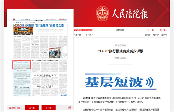 《人民法院报》:黑龙江伊春 “1·6·8”执行模式有效减少诉累