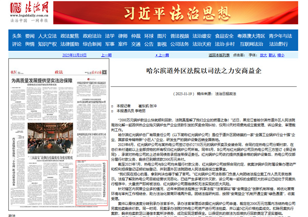 “2000万元锅炉款这么快就顺利回款,法院真是解了我们企业的燃眉之急!”近日,黑龙江省哈尔滨市道外区人民法院高效化解一起因供热企业拖欠锅炉生产企业货款引发的买卖合同纠纷,仅用10天时间便完成立案受理、诉讼保全、审理裁判工作。哈尔滨红光锅炉总厂有限责任公司(以下简称红光锅炉公司)是位于道外区团结镇的一家“全国工业锅炉行业十强”企业、国家级专精特新“小巨人”企业,研发生产的锅炉设备远销全国各地。2023年6月,红光锅炉公司与某热电公司签订总价2750万元的锅炉买卖及安装合同,合同约定热电公司分期付款,在总价未付清前以上全部货物的所有权归红光锅炉公司所有。同年8月,B公司与红光锅炉公司及热电公司三方签..