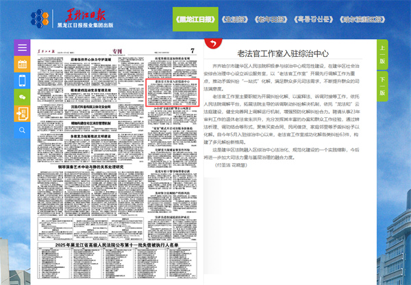 《黑龙江日报》报道齐齐哈尔市建华区法院:老法官工作室入驻综治中心