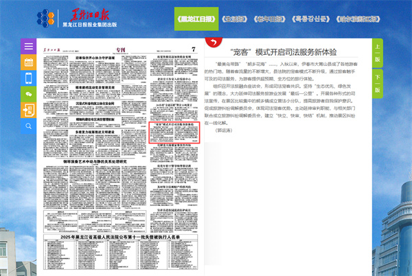 《黑龙江日报》大箐山县法院:“宠客”模式开启司法服务新体验