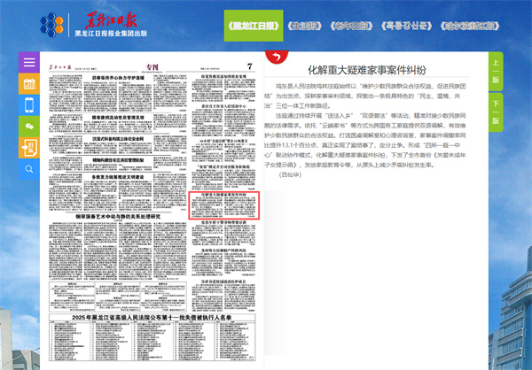 《黑龙江日报》报道鸡东县法院:化解重大疑难家事案件纠纷