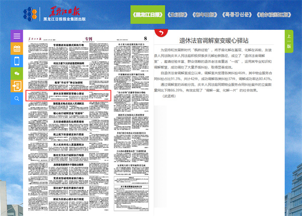 《黑龙江日报》报道友谊县法院:退休法官调解室变暖心驿站