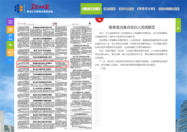 《黑龙江日报》报道大兴安岭地区新林区法院:聚焦重点难点培训人民调解员