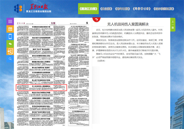 《黑龙江日报》报道杜尔伯特蒙古族自治县法院:无人机田间伤人案圆满解决