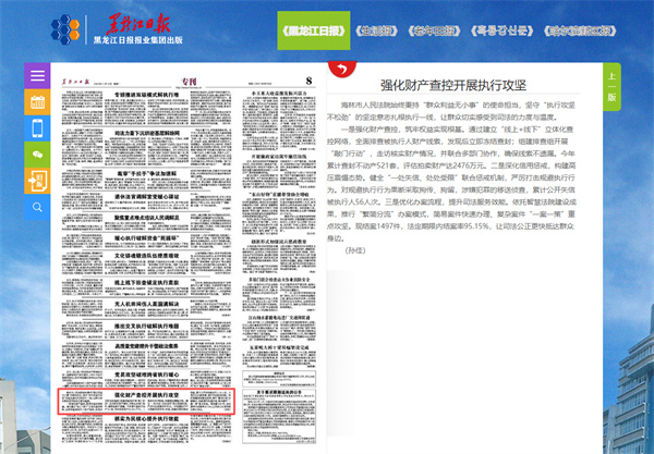 《黑龙江日报》报道绥滨县法院:线上线下排查锁定执行案款