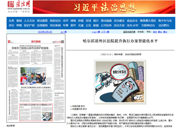 《法治日报》:哈尔滨道外区法院提升执行办案智能化水平