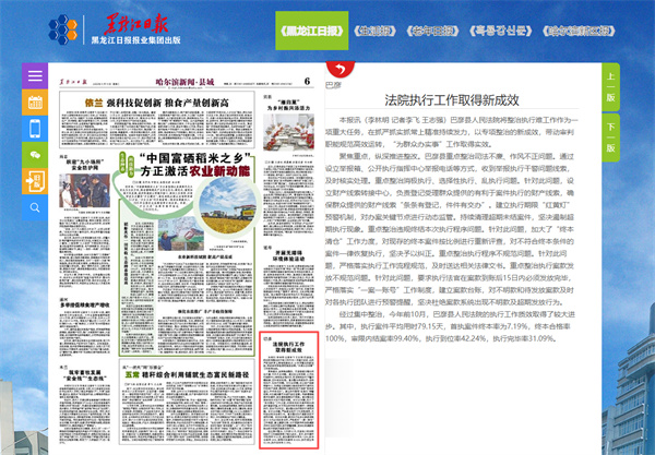 《黑龙江日报》:巴彦 法院执行工作取得新成效