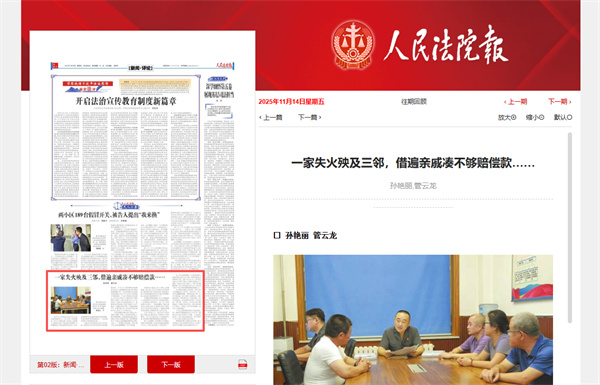 《人民法院报》:一家失火殃及三邻 借遍亲戚凑不够赔偿款……