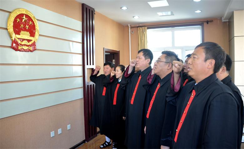 为了激励广大法官牢记神圣使命,恪尽职守,8月23日,孙吴法院组织全体法官举行重温法官誓词宣誓活动。在院长薛文的带领下,全院法官身着法官制服,胸佩法徽,肃然站立,全体法官面向法徽,举起右手宣誓,铿锵有力的誓言,让每一名法官的心灵又一次受到了震撼和洗礼。通过宣誓活动,进一步增强了全体法官廉洁司法、..