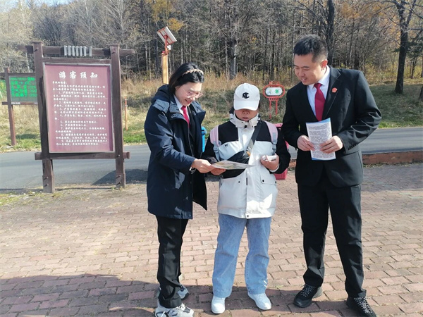 为提升辖区群众对环境资源犯罪的认识,近日,伊春市伊美区法院走进伊春兴安国家森林公园开展环境资源法治宣传活动。此次活动紧扣生态环境保护主题,旨在向广大群众普及生态环境资源保护的相关法律法规,倡导绿色生活方式。活动现场,干警们通过发放宣传资料的方式,向过往群众宣传环境资源保护的重要性,并结合近年..