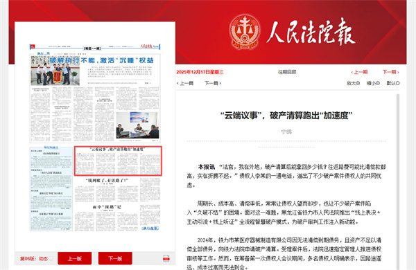 《人民法院报》报道铁力市法院:“云端议事” 破产清算跑出“加速度”