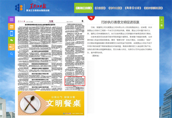 《黑龙江日报》报道密山市法院:巧妙执行善意文明促进双赢