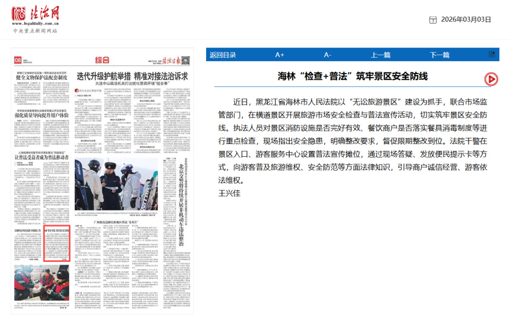 《法治日报》:海林“检查+普法”筑牢景区安全防线