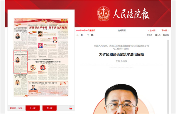 《人民法院报》:全国人大代表、黑龙江龙煤集团鹤岗矿业公司峻德煤矿电气工程师许晓林:为矿区和谐稳定筑牢法治屏障